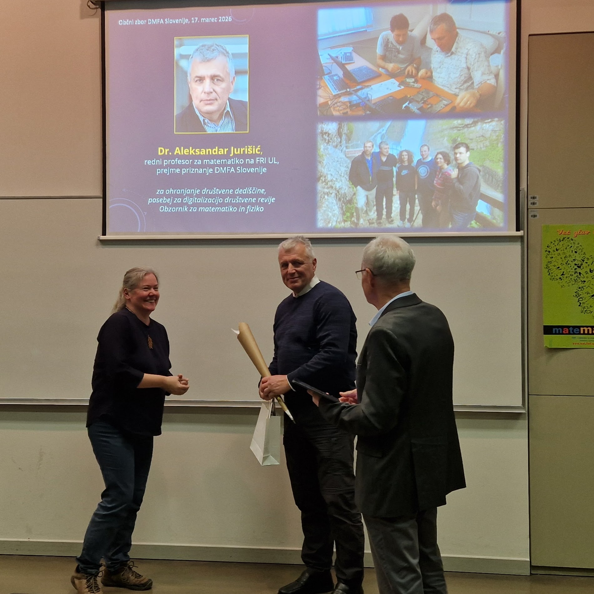 Aleksandar Jurišić, Milan Mitrović in Simona Pustavrh letošnji prejemniki priznanj DMFA Slovenije
